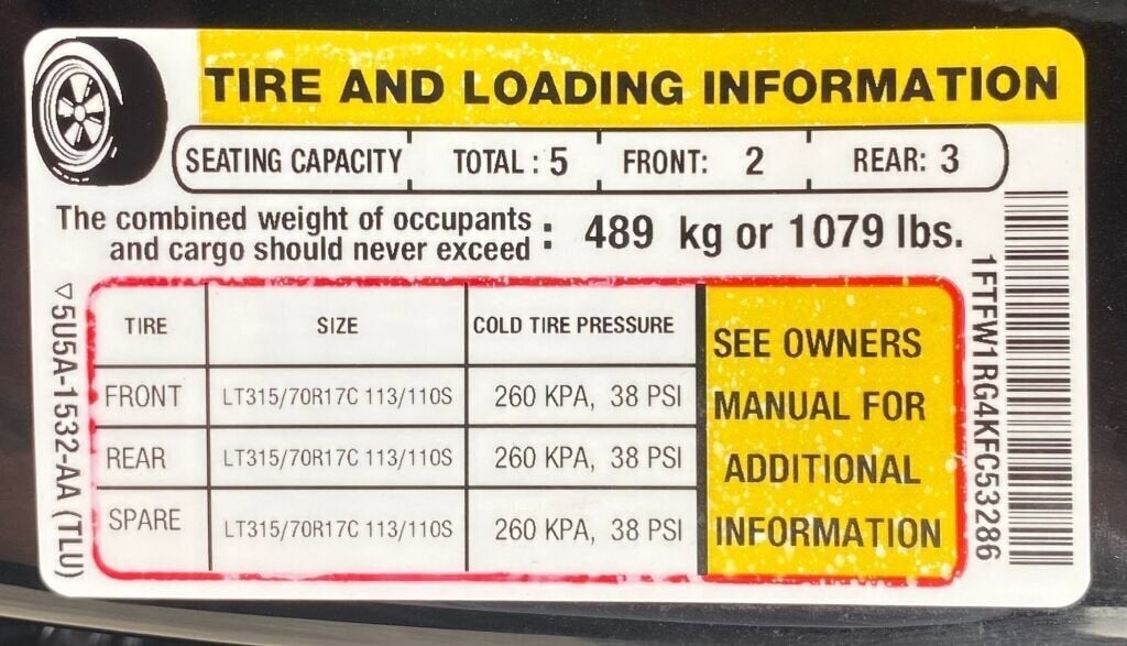 - Tires: LT315/70R17 BSW A/T -inc: same spare