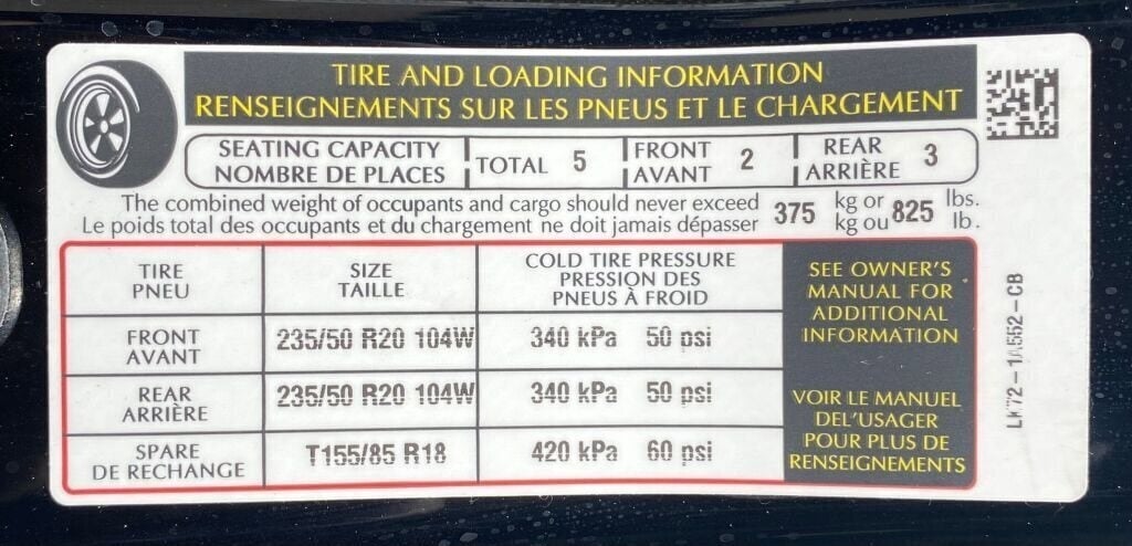 - Spare tire size (temporary)