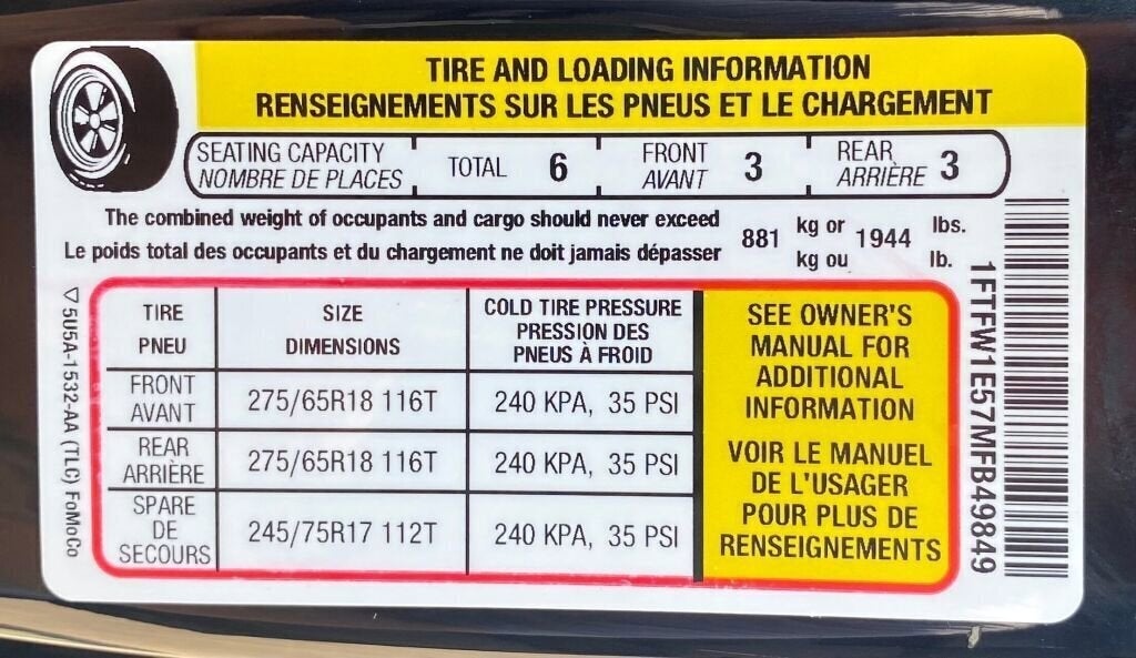 - Spare tire size (full-size)